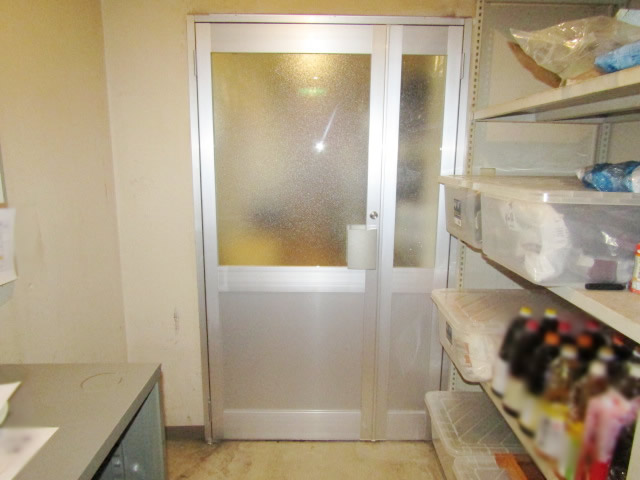 既設は片開きドアでしたが、LIXIL製品クリエラガラスドア親子仕様へ取り替え施工しました。上部はアクリル半透明パネルを使用、重量がとても軽くなりました。