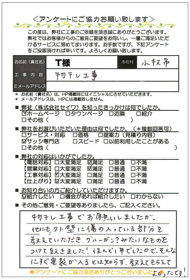 « 【ハガキ】名古屋市中村区 エクステリア ベランダ テラス屋根取替工事お客様の声【サッシ.NET】 【ハガキ】名古屋市緑区 エクステリア フェンス取替工事お客様の声【サッシ.NET】 »